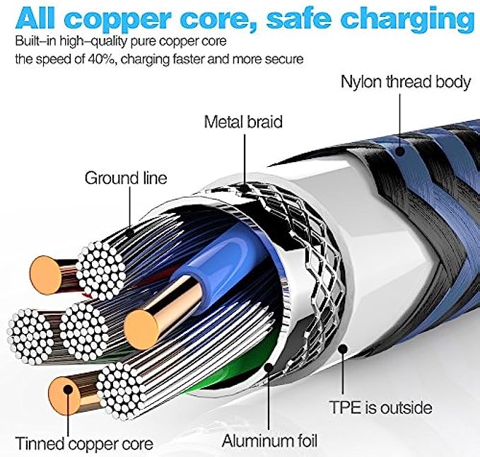 • Perfect long enough cords, enjoying the data sync & charge anywhere and anytime and do not need to worry about bringing your cables anywhere.