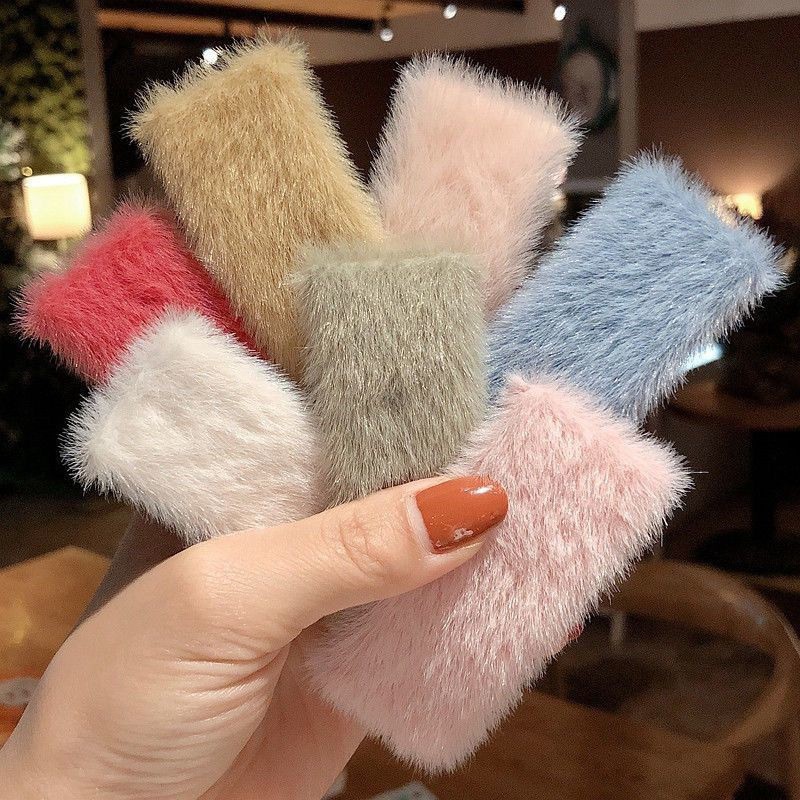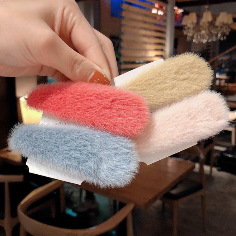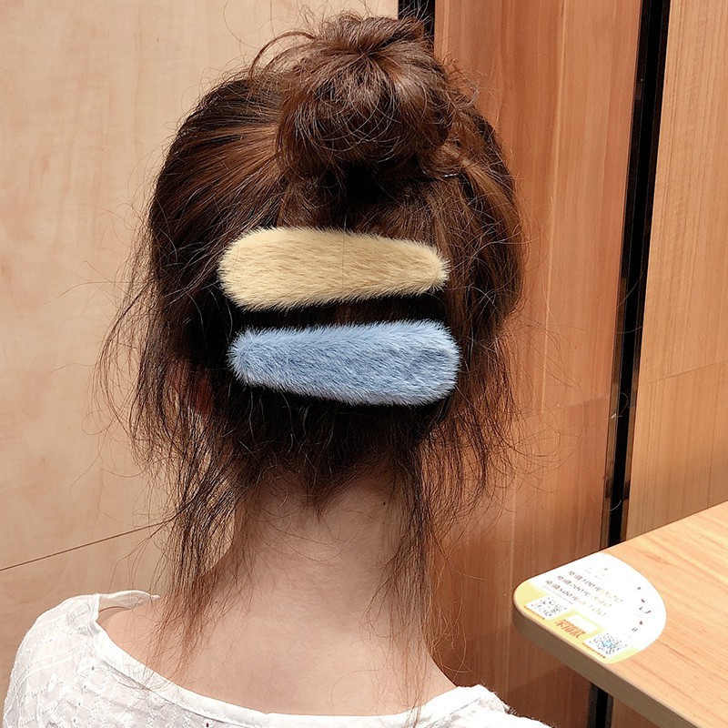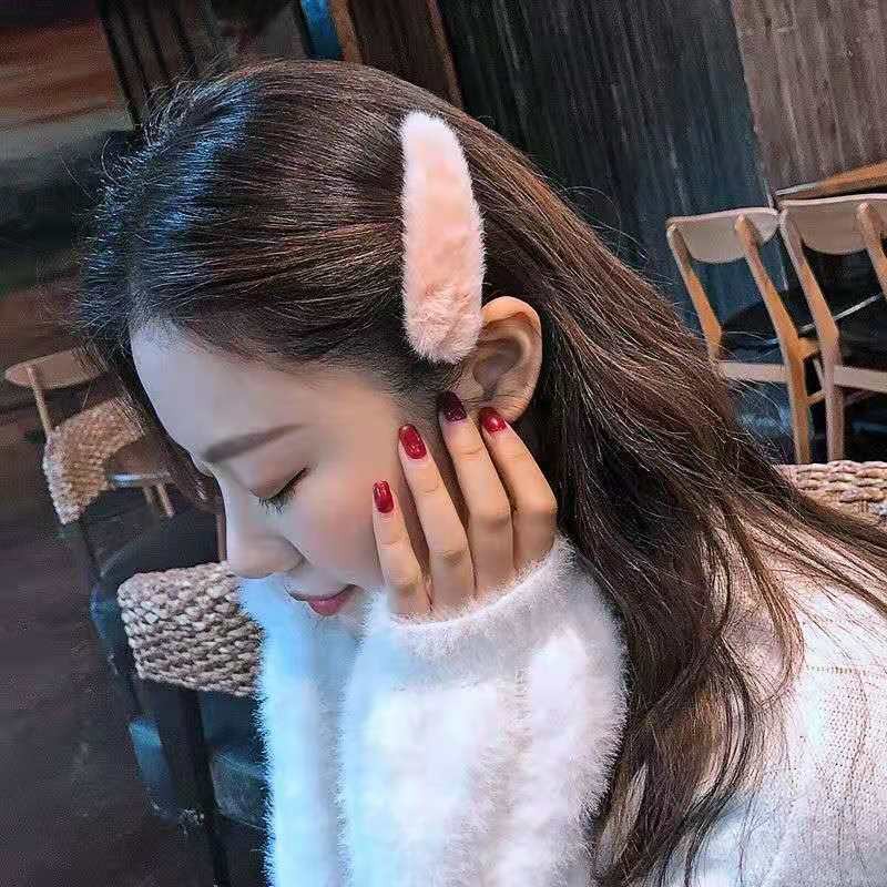 Korea ins Hair Clip BB Clip Mink Edging Clip Word Plush Hairpin Female Adult Clip Headdress