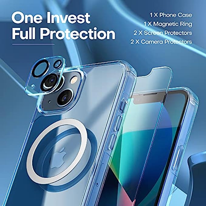 • ?【3-in-1 360° Full Protection】This iPhone 13 case with 2 screen protectors and 2 camera lens protectors can provide a 360° all-around protection for your phone. The 3-in-1 case adopts a multi-layer buffer structure to effectively absorb impact and protect the phone, screen, and camera.