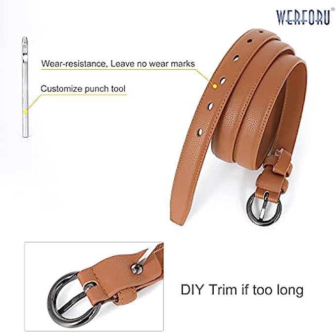 • DESIGN- Solid pin buckle skinny thin waist belt in black brown coffee and white colors to match your different outfits and give you the classic look.One order for two different color belts.